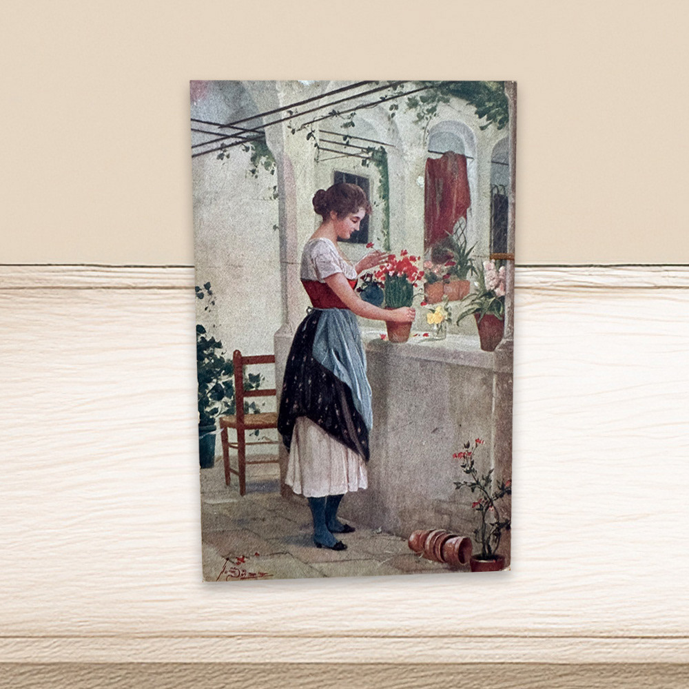All the charm of my vintage paintings, now envelope-sized and perfectly shippable! I hand-select antique postcards and photographs from local markets, then paint your pet into the scene. These smaller pieces are affordable to ship, easy to frame, and perfect for tucking into any spot that needs personality—your desk, a gallery wall, or that awkward little nook you've been trying to fill. Keep one for yourself or send one as a gift that's equal parts nostalgic and surprising.